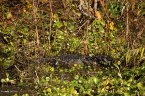 As we walked along the boardwalk we observed Cooter turtles, bass and alligators swimming among the tall reeds, Lily Pads and Water Hyacinth. We spotted a Little Blue Heron and several Kingfishers fishing for their lunch! Good thing we did not have to do the same!