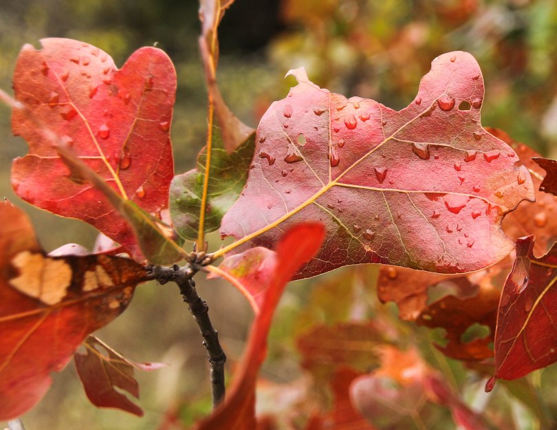 Rain Drops and Oak Leaves
