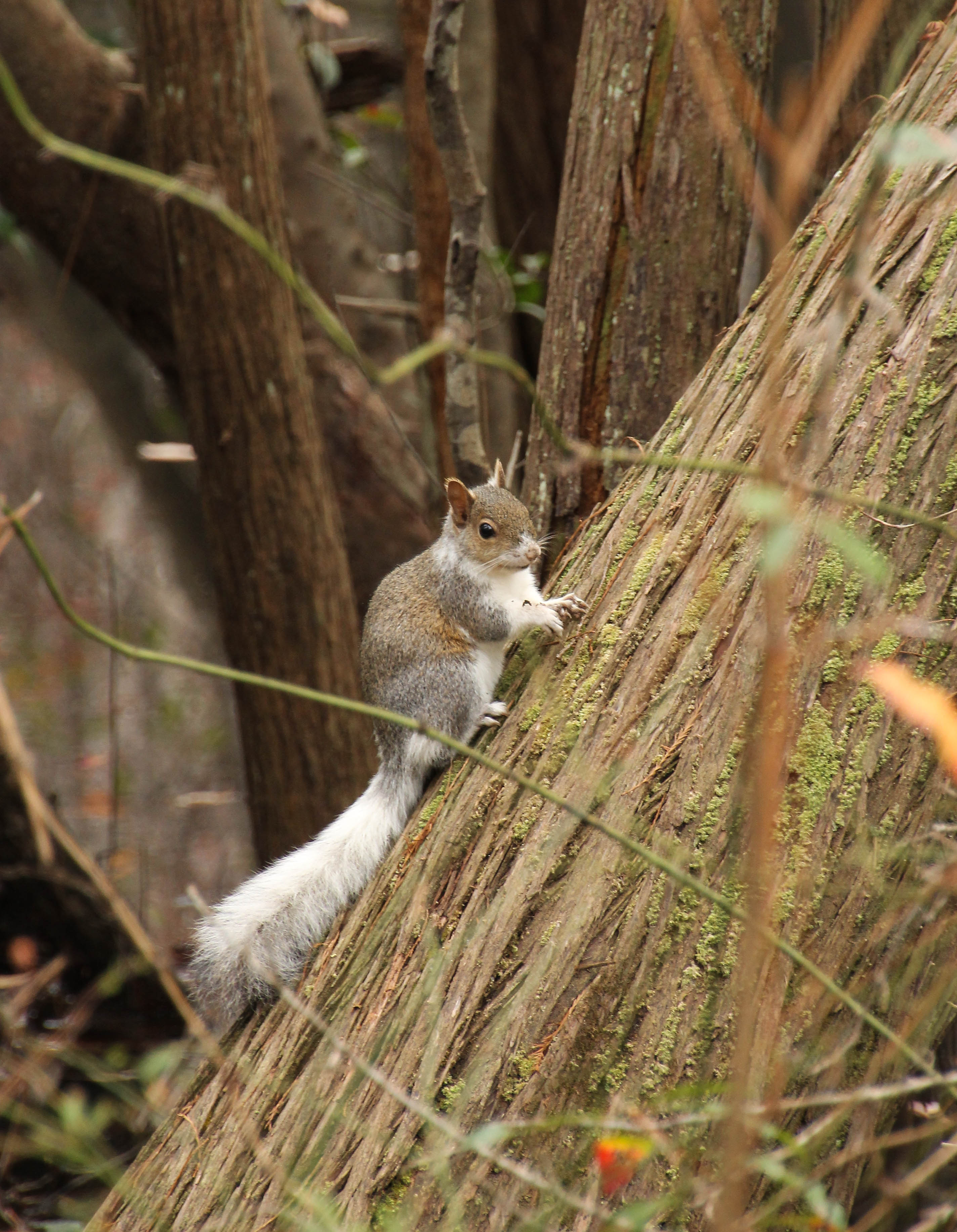They are just too darn cute. Yesterday, we were driving out of the Blackwater River State Park and we spotted “something” along the side of the road. I turned around and it ran into the woods. On our way back from town we spotted another one, this one was all black with a white face! Last yesterday afternoon we were on a long walk and this little guy was hanging down by the river. I was lucky to capture her. A totally different color combination!