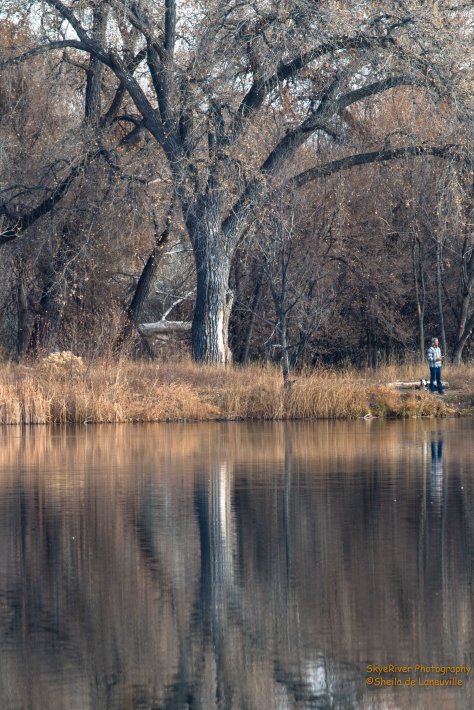 I took these photos on Sunday. I was really trying to capture the reflection and when I downloaded the photo I noticed the fisherman and his doggie.