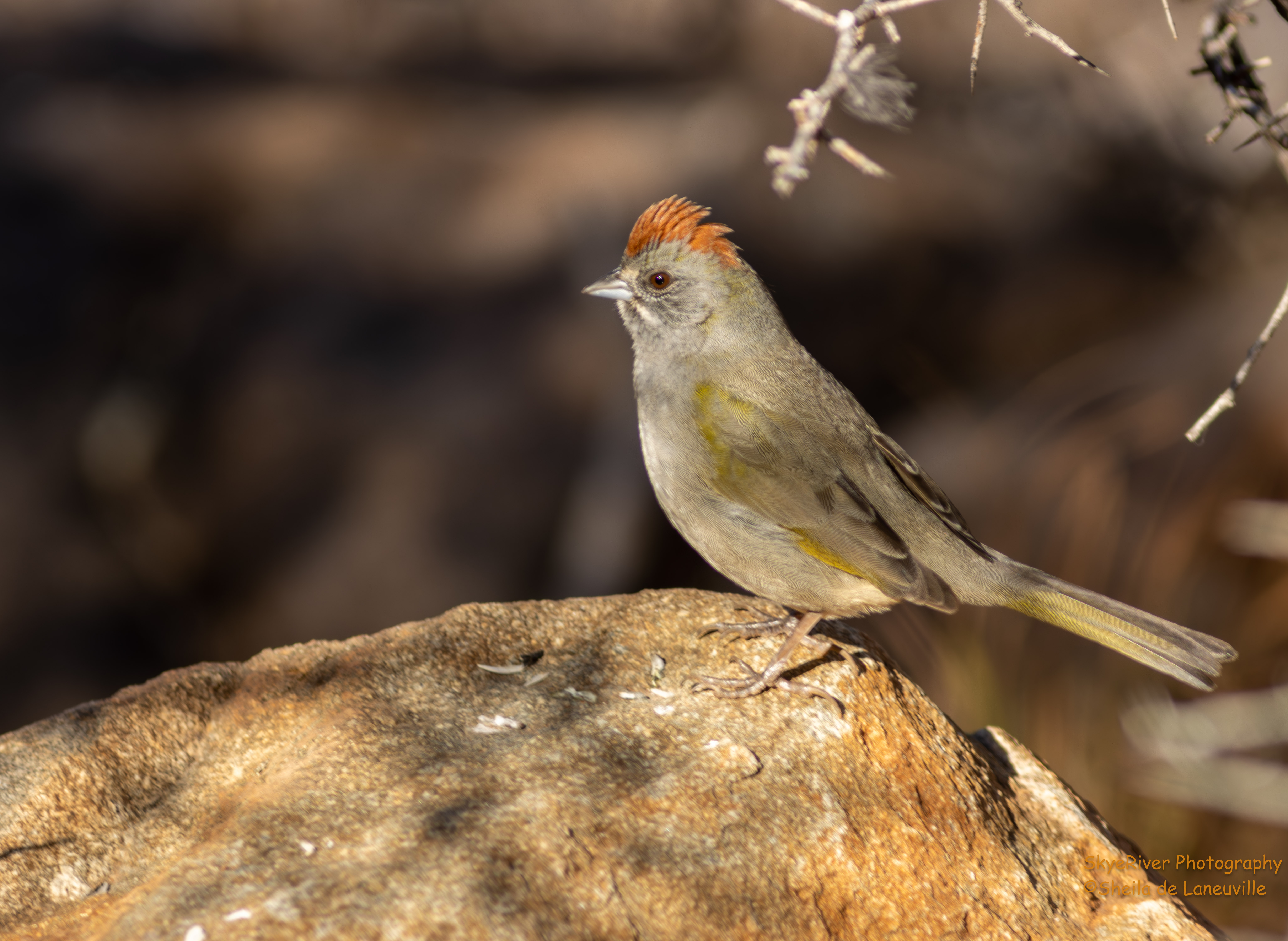 I love Towhees. This Green-tailed Towhee is such a beautiful bird with its white throat, distinct rufous head to its olive green wings, back and tail. It’s one of the smallest Towhees with a huge personality.