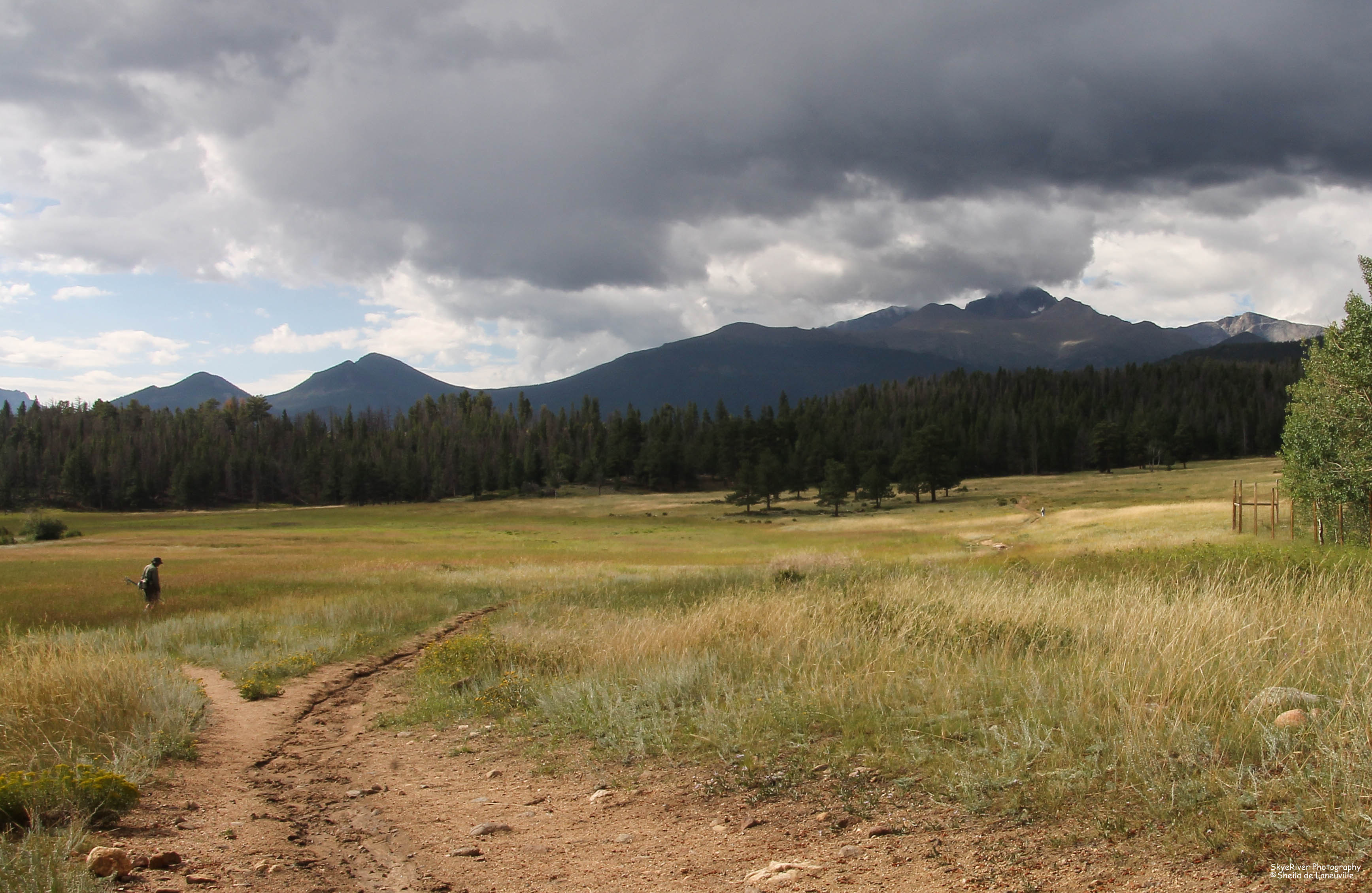 As we left the canyon having traveled through the little mountain town of Glen Haven we crested the last hill and descended into the valley toward Estes Park. The Rocky Mountains, with their snow covered peaks, are what you see first. As your eyes adjust to seeing these magnificent mountains you can then and only then take in the beauty of the valley as it stretches out in front of you.