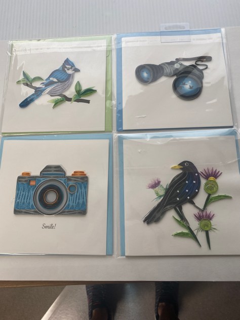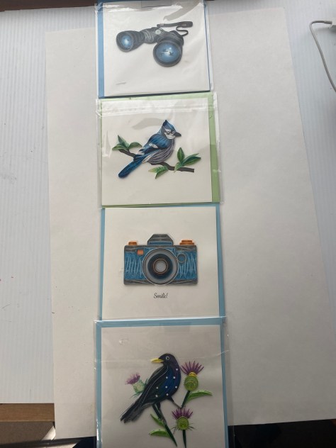 On our travels this spring, I purchased these cards at Stephen F. Austin State Park in Texas. The art is called quilling.