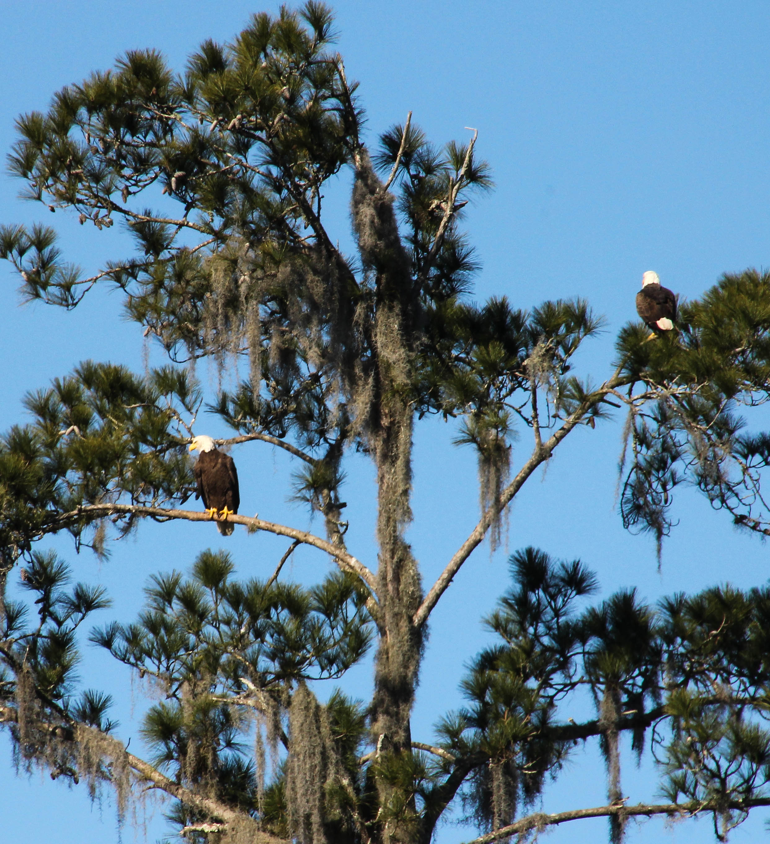 Sunday morning, when we were getting ready to leave Rainbow Springs State Park and drive over to Silver River State Park, this pair of Bald Eagles flew into a tree right in the campground.