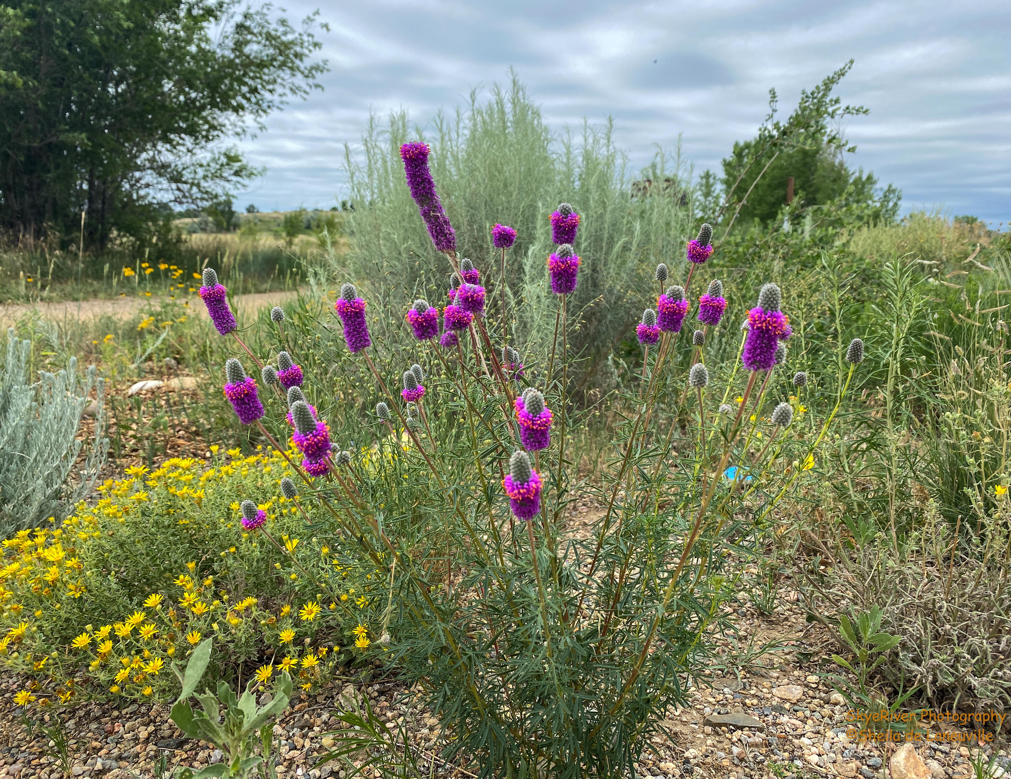 A group called Colorado Native Plant Society planted a rock garden along one of the paths. This morning this plant caught my eye. It is called Purple Prairie Clover.