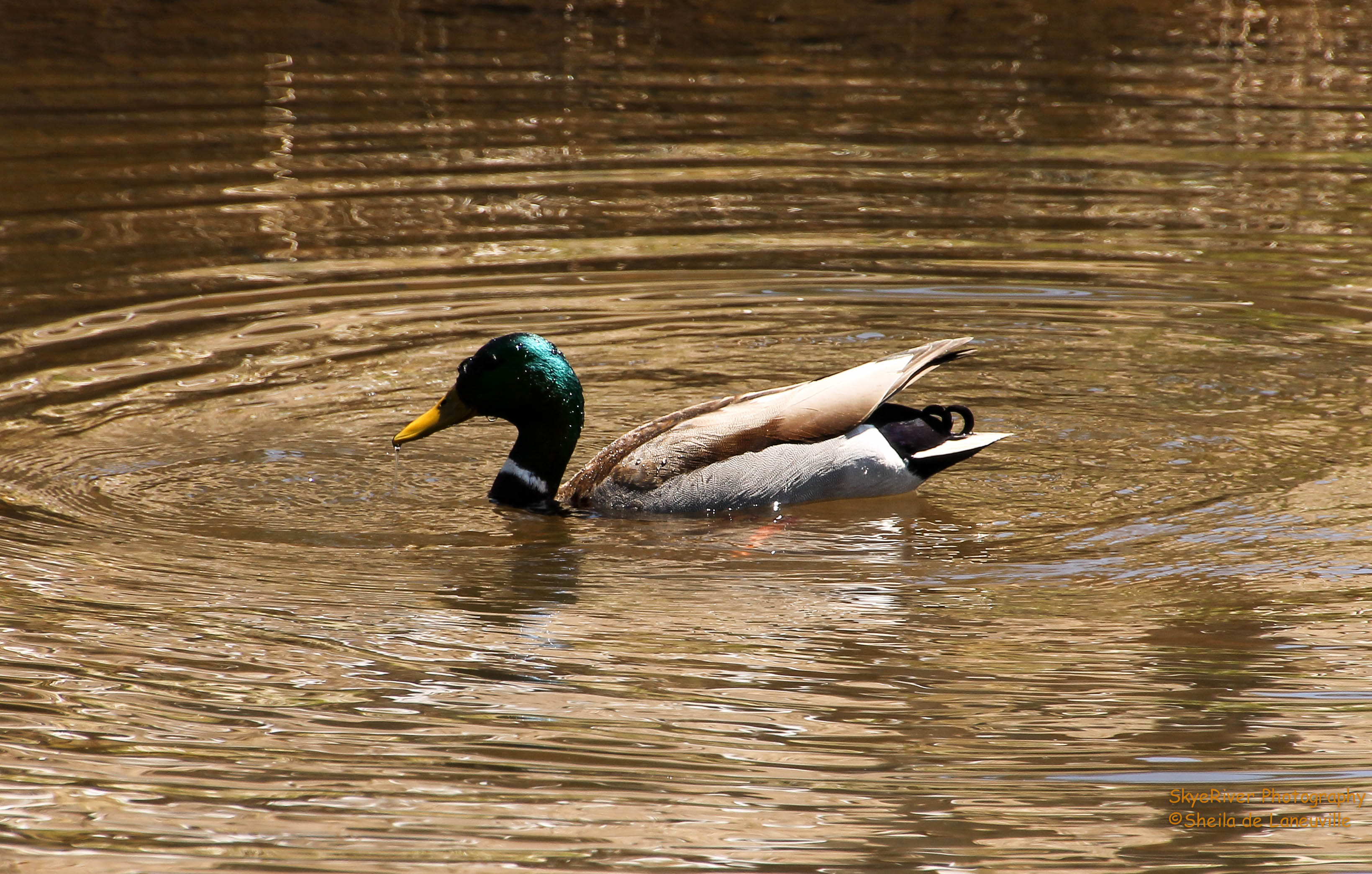 This male Mallard made us giggle. We watched him tipping head first into the pond and using his feet to paddle around searching for seeds, plants and snails.