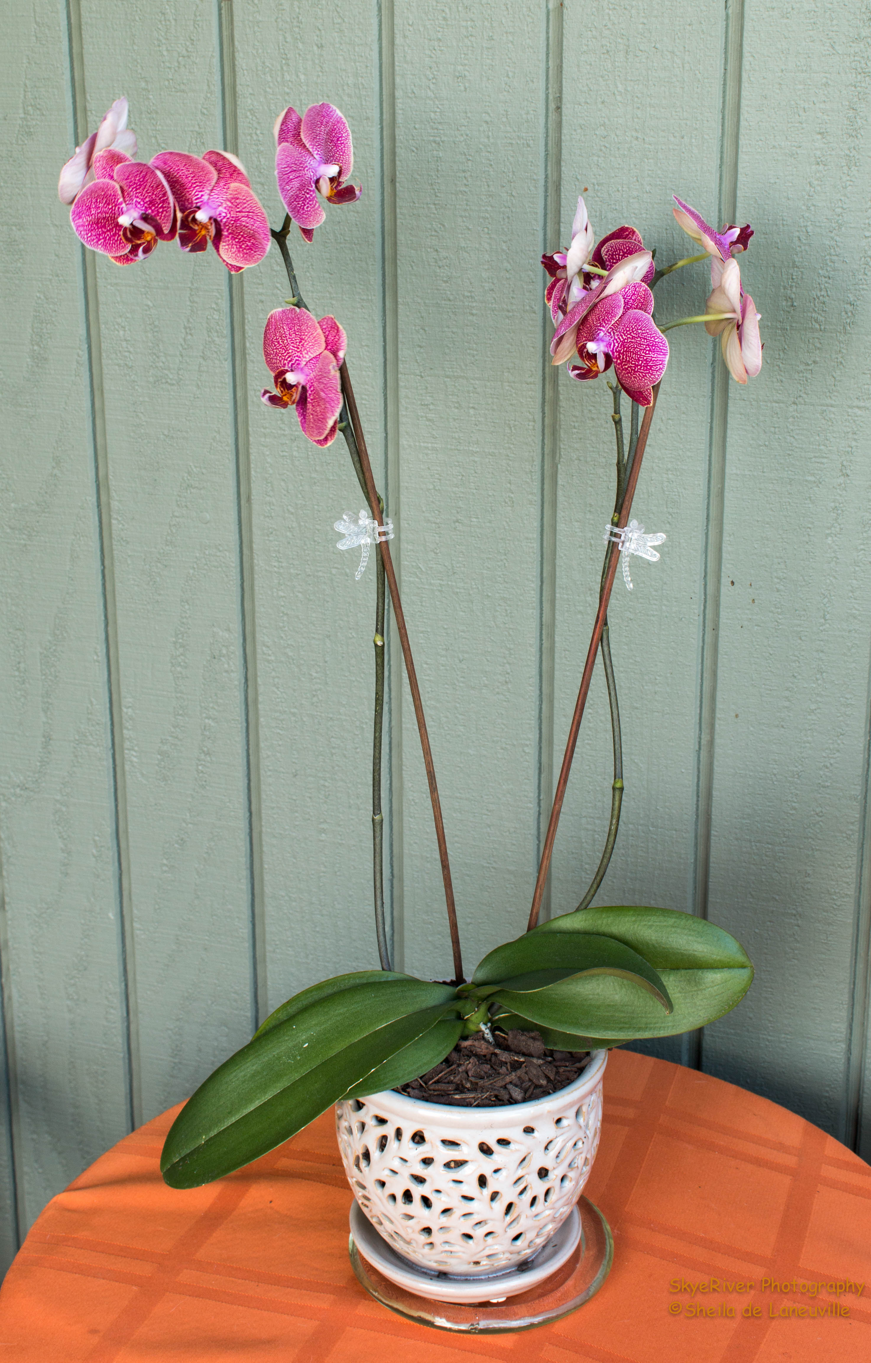 My three Orchids are Phalaenopsis Orchids and I understand that they are the most common, and are the ones sold at grocery, hardware and other type stores. People claim they are easy to maintain and that they produce gorgeous flowers twice a year. They come in many different colors and are commonly called the “Moth Orchid”.